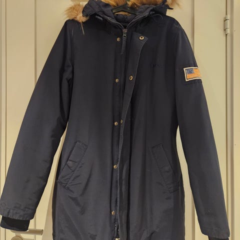 Svea Vinterjakke for kvinner i størrelse L, fargen svart. Jakken har en hette med pelskant og flere lommer. Egnet for kaldt vær og vinterbruk.