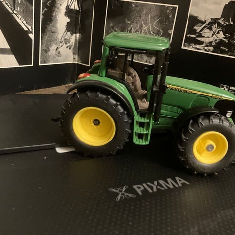 Traktor - leketøysmodell. Traktoren har rød og hvit farge med detaljer i svart. Passer til lek og samling.