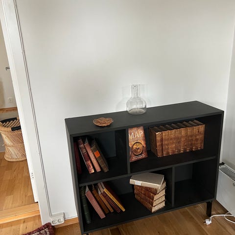 Bokhylle selges pga plassmangel. Noen år gammel, men ingen skader. Bruksmerker kan forekomme, trenger en god vask. Mener den er kjøpt på skeidar eller bohus. Må hentes på Stavset