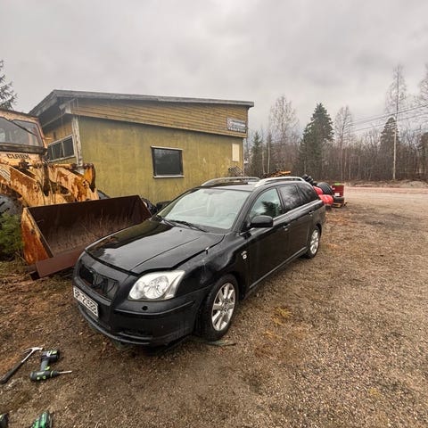 Toyota Avensis stasjonsvogn i sølvfarge 2004 mod. Bilen har en 4-sylindret bensinmotor, motoren er i god stand starter lett går fint, gerkassen er gåen, derfor jeg selger bilen i deler