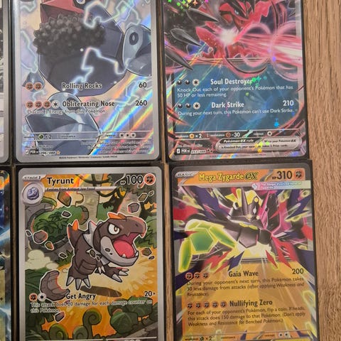 Selger disse fine pokemonkortene ☺️ De fleste er i god stand, men det er fortsatt noen som har småskader som riper. Vil helst selge alt sammen, da jeg ikke trenger dem mer lenger 😊 Hvis du lurer på noe ta gjerne kontakt!📞☎️
