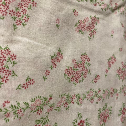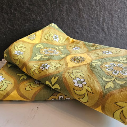 Selger her et vintage dynetrekk. Anslår slutten av 70-tallet - begynnelsen 80-tallet. Vanlig voksen dyne str. 99% sikker på at det er bomull. God kvalitet. Kanskje flott til omsøm?