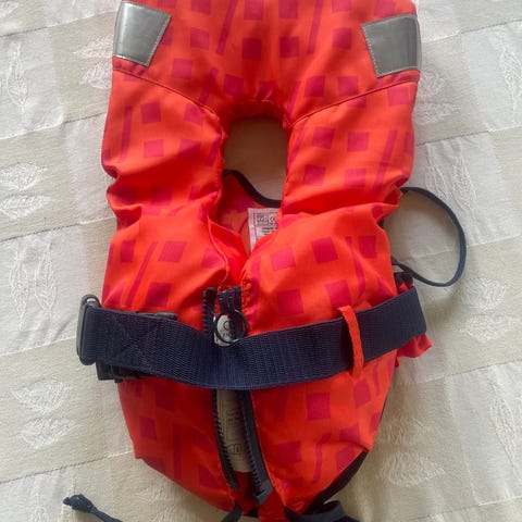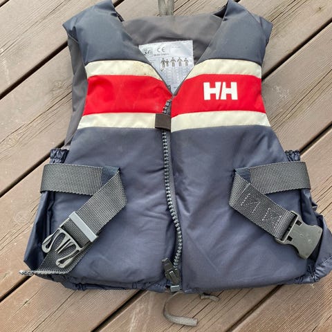 Som ny Helly Hansen redningsvest med fløyte og en stropp i skrittet for å sikre at den sitter godt ved behov.