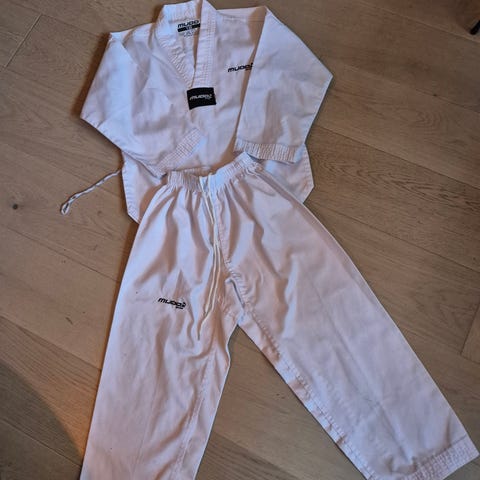 Adidas Kampsport Drakt i hvit farge, størrelse 140 for barn. Drakten består av jakke og bukse, laget for kampsportaktiviteter. Materialet er slitesterkt og egnet for trening og konkurranse.