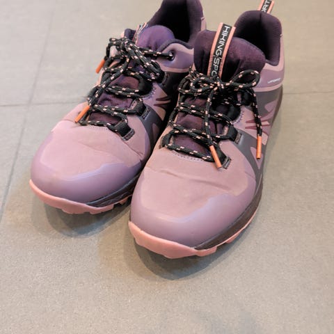Ukjent Merke vandresko i størrelse 39, beige farge. Skoene har en tekstiloverflate med snøring og en gummisåle. Designet for fottur og utendørs bruk.