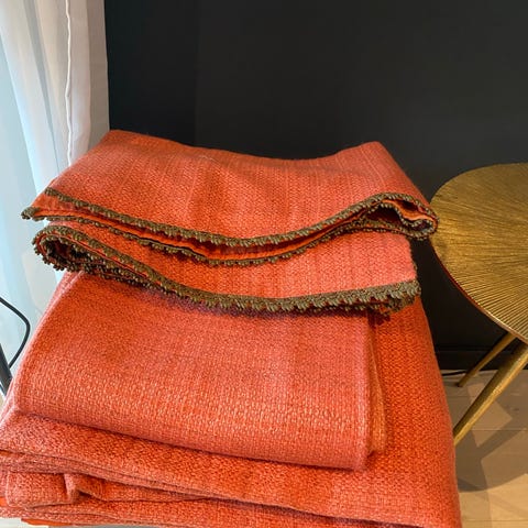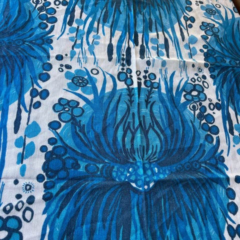 Er du på retrokjøret? Ja da passer denne for deg! Kjempestor duk eller sengeteppe eller teppe eller ja, vet ikke helt. Ca 195 x 235. Masse masse tykt vevd stoff. Denne er vintage fra 70-tallet. Tenk så mye fint denne kan brukes til siden den er så stor. Omsøm?