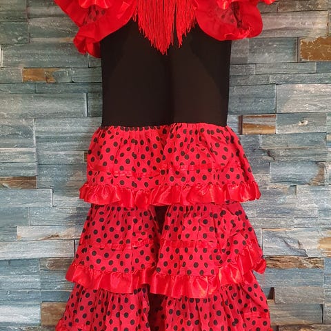 Brukt 1 gang på en "utklednings-trønderfest" Størrelse L, men kan nok passe både s,m og l etter hvor stor man vil ha den. I grunn i god stand, men det er noe synlig at frynsene har vært tapet opp/stiftet litt så de ikke skulle være synlig den ene gangen den ble brukt.