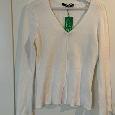 Genseren har ikke vært i bruk, men lappen er fjernet. Myk og behagelig. 3/4 lange ermer.Viscose og polyamid. Raglanfelling og bobbel kant nede og på ermene som gjør at den holder fasongen fint. Hentes sentralt i Moelv…..evt sendes mot betalt porto. Se gjerne mine andre annonser.