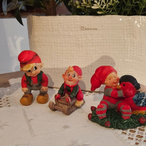 Søt liten nisse som sover i en sko. Ca 5 vi høy og 8 cm lang