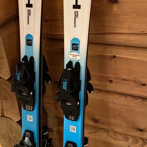 Brukt, men fortsatt i god stand. Vanlige bruksmerker, men skiene er solide og bindingene fungerer som de skal.