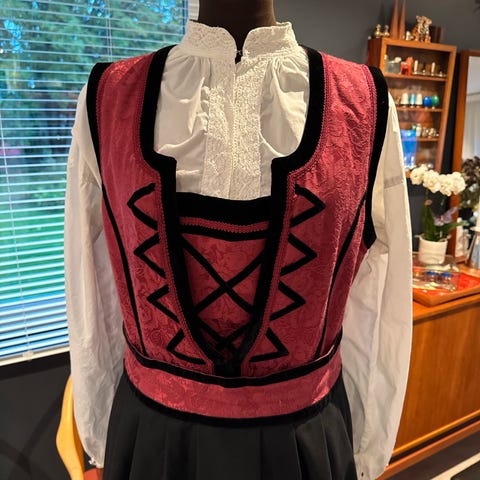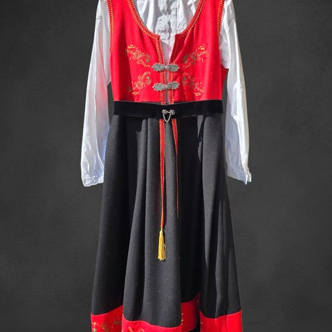 Drakten er aldri blitt brukt. Ny pris 2850 med skjorte og cape. Størrelse 46/48.