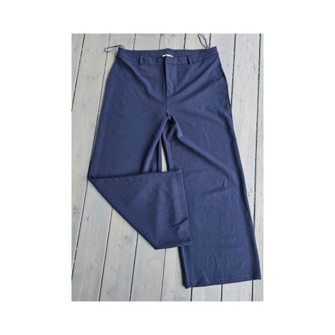 Myk og behagelig trikotert bukse med høyt liv og god stretch. Moderat vidde i setet og lår. Skjult elastikk i livet. Liten splitt nederst på benåpning