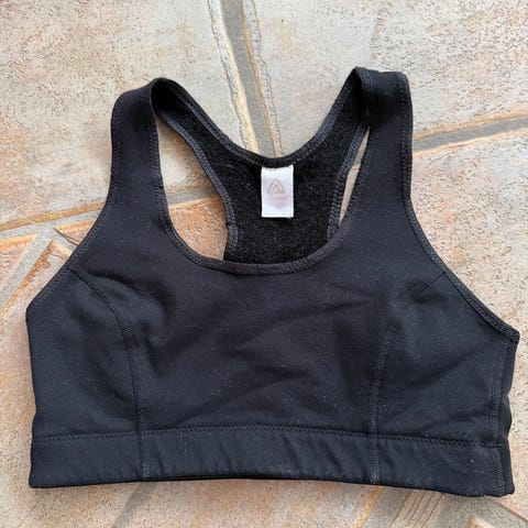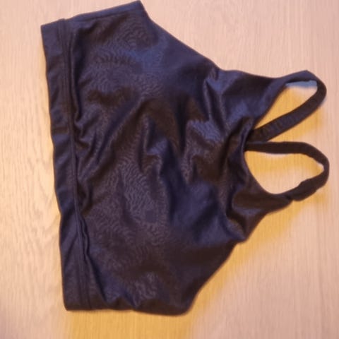 Fitness sportstopp for dame i størrelse XS, svart farge. Laget i elastisk materiale som gir god støtte og komfort under trening. Designet med høy hals og åpne ryggdetaljer for bedre ventilasjon fra hm.