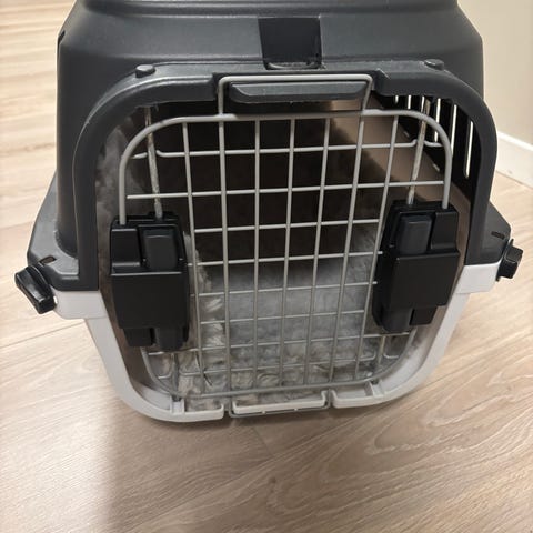 Ferplast Atlas 10 transportbur laget av plast med metallgitterdør. Buret har ventilasjonsspalter på sidene og et håndtak på toppen for enkel transport. Passer til små til mellomstore kjæledyr.