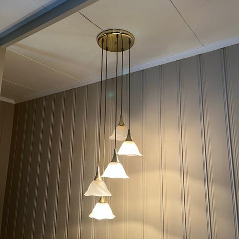 Pen vegglampe, måler 65 cm fra topp til bunn.