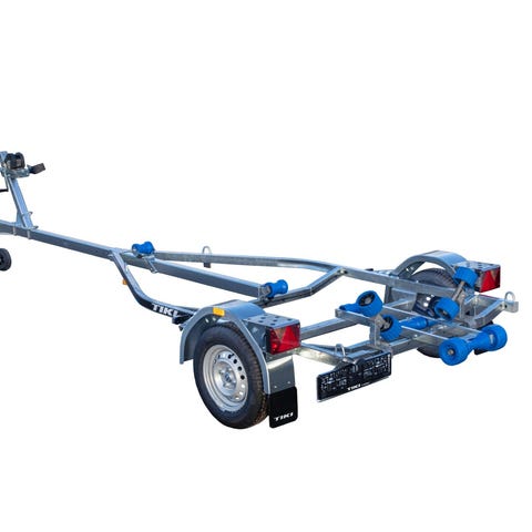 Tiki BP-3500 DRB Multiroller Båthenger bremset båthenger for båter opp til 25 fot. Med brems på hengeren er det tillatt å kjøre i opptil 80km/t på veier som har den fartsgrensen eller høyere. Helsveiset og varmgalvanisert dobbel A-ramme av firkantrør gir en stivere og meget solid henger. Multirullersystemet består av 40 store kjølruller som parvis automatisk justerer seg etter båtens skrog. Passer de aller fleste skrogtyper. Opptrekket blir derfor ekstra skånsomt for båten. Vinsjtårnet kan flyttes i hengerens lengderetning, så man kan balansere båten perfekt på tilhengeren. Den er utstyrt med dobbel myk bauggummi som beskytter skroget godt. En anerkjent kraftig Goliath vinsj følger med. Baklyktene er utvippbare med gassdemper som holder de på plass, så det er ingen behov for å ta de av, og fikle med ledninger. Hengeren er utstyrt med LED lys rundt baut, også baklys er LED. Ledningene er skjult i rammen. Stålskjermer som tåler opptil 100kg, gir lettere tilgang til båten når den står på hengeren. Surrefester til stropper er integrert i hengerens ramme, foran- i midten -og bak på hengeren. 14 tommers hjul gjør den fin å kjøre også i ulendt terreng. God kvalitet, enkel i bruk og skånsom mot båten.