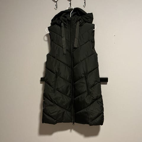 Dunvest fra Uniqlo. Fylling 90% dun, 10% fjær. Størrelse på lappen er XXS men den er faktisk XS/S. Kommer med en veske for enkel oppbevaring mens du reiser. Som ny