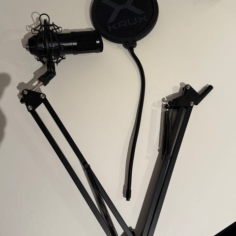 Selger min pent brukte røde podmic medfølgebde en goxlr mini samt alle kabler nødvendig til å bruke. Røde podmic anbefales til alle som enten skal streame, spille inn podcast eller bare de som vil ha en ekstremt god og deilig mikrofon. Den selges også sammen med et GoXlr mini «miksebord» som er nødvendig for å tilkoble micen til en pc. Med den kan du justere lyd, sound effects, og mye annet jeg ikke har satt meg inn i. Dette selges samlet som en slags pakke.