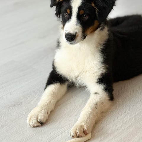 Det er en hannvalp ledig. Han er en flott, kosete og tillitsfull valp som ønsker seg et godt og trygt hjem. Han kan flytte ut etter den 14. september.