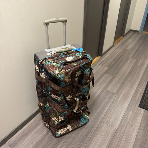Materiale utside: 100% bomull. Innside: 90% polyester, 20% bomull. Kofferten måler 45 x 34 x 15 cm.