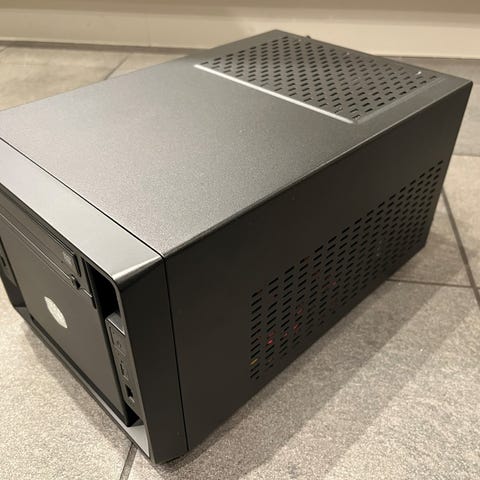 Selger en kompakt Mini-ITX PC med imponerende kraft pakket inn i et lite kabinett. Perfekt for deg som ønsker høy ytelse uten å fylle opp pulten eller stua med et stort tårn.