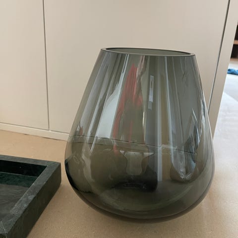 Selger en skjønnhet av en vase fra Broste Copenhagen – laget i munnblåst glass med frosted finish og en form som sier: "Jeg er ikke som de andre vasene" 😎