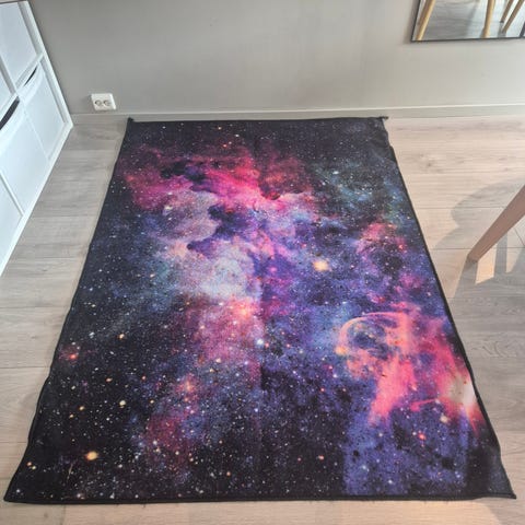 Delikate matter i bomull. Den turkise fargen gir fint liv til en gang eller et barnerom. To veldig fine og en matte som krever litt mer vask.