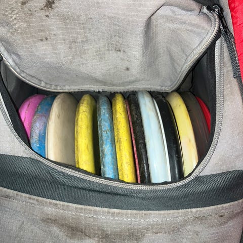 Brukt i ca to sesonger. Er et hull i stoffet på ene sorte innerlommen i sideelommen du ser på bilde.