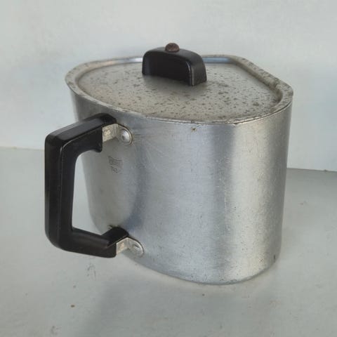 kjele laget av rustfritt stål med lokk. Gryten har svarte håndtak i plast og er egnet for allsidig matlaging. Materialet er 18/10 rustfritt stål, som gir god holdbarhet og enkel rengjøring. Passer til bruk på ulike varmekilder.