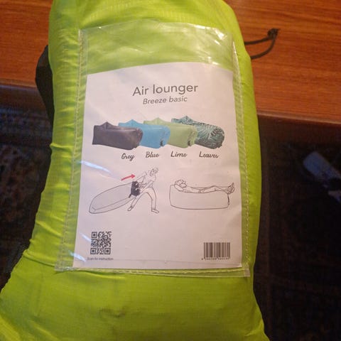 Selger 2 oppblåsbare strandsofaer i sterke farger (sort og gul). Perfekte til stranden, hagen, festival eller camping. Sofaene fylles enkelt med luft ved å “dra” de gjennom luften, rulles sammen i åpningen og låses med spenne – helt uten pumpe.