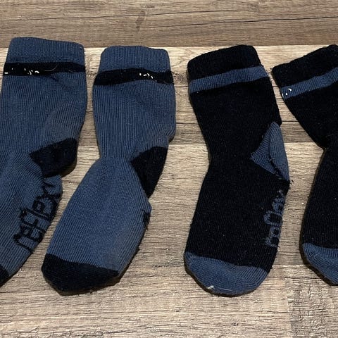 Sokkene er glattstrikket med innsydd strikk og ribbestrikk øverst i skaftet, noe som gir en stabil og komfortabel passform som sitter godt på foten gjennom hele dagen.