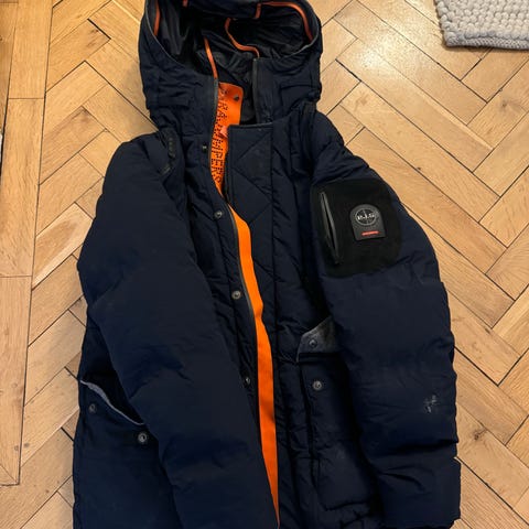 Jakka ble kjøpt i november 2024, men ikke tatt i bruk før på vårparten. Da den var feil størrelse, ble den kun et fåtall ganger brukt til/fra jobb, og er såpass lite brukt at brettemerkene fra da den var helt ny er fortsatt tilstede, se bilde.