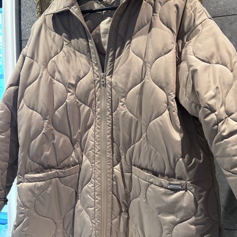 Lexington-jakken, størrelse M, i beige farge. Jakken har knappelukking foran og detaljer i et annet materiale på skuldrene. Den er egnet for hverdagsbruk og lettere utendørsaktiviteter.