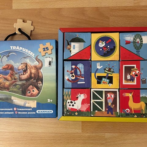 Ravensburger My First Puzzles er en 4-pakning med barnespill som inneholder puslespill med fire forskjellige motiver: traktor, brannbil, buss og gravemaskin. Puslespillene er designet for små barn og har store biter som er enkle å håndtere.