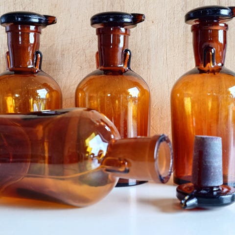 2 eldre apotekerflasker fra Egersund Apotek som har inneholdt 0,3 ml Terpentin og matolje, den andre vanskelig å lese. Selges samlet kr 120,- + ev porto fra Hgsd .