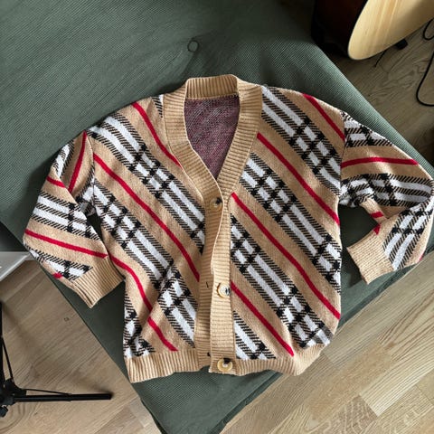 Enkel, fin, lys cardigan. Onesize. 100% akryl.