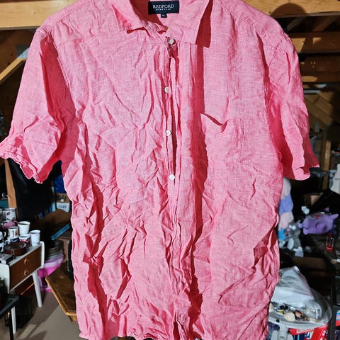 Redford Menswear str XL kortermet skjorte i linmix. 55 % lin 45 % bomull. Pen blå farge.