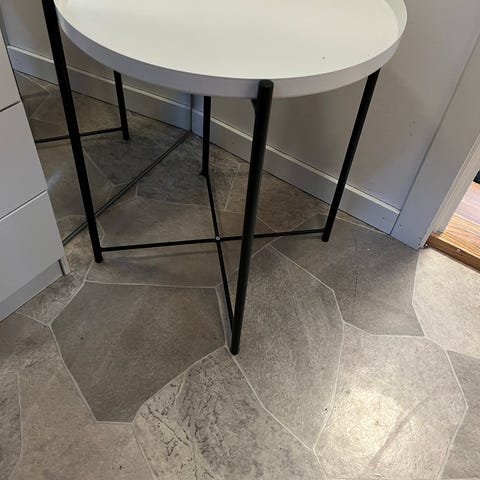 Selger et brettbord/sidebord/nattbord fra IKEA i farge mørk gråbeige. Bordet har en liten bulk oppå brettet, se bilde 3 og 4. Uten betydning for bruk og lite synlig. Kan hentes ved Lunde skole, send melding for adresse.