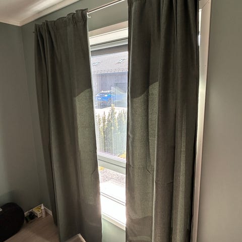 Selger et par gode beige lystette gardiner for 400 kr. Gardinene demper godt lyset og henger pent.