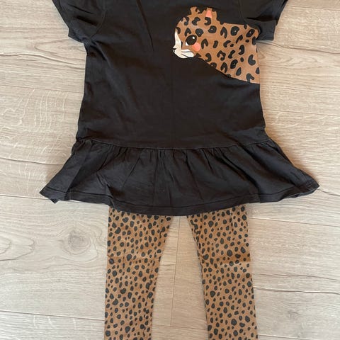 Shorts med leopardmønster, lommer, justerbar midje & avtagbart belte fra PompDeLux. Svart strømpebukse fra H&M Str. 110/116
