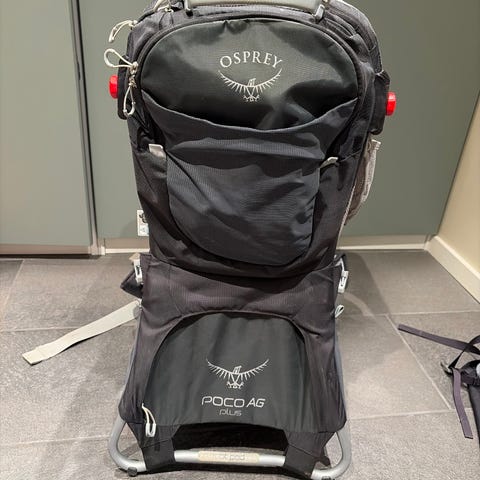 Osprey Barn Ryggsekkbærer med solskjerm i blå farge. Designet for å bære barn komfortabelt på ryggen under turer. Utstyrt med justerbare stropper for tilpasning og støtte. Inkluderer solskjerm for beskyttelse mot sollys. Laget av slitesterkt materiale for utendørs bruk.