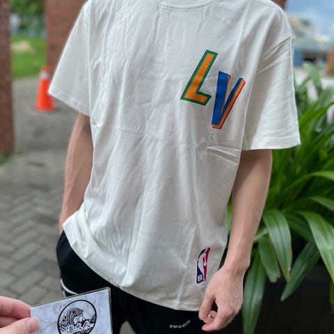 Louis Vuitton Basketball T-skjorte i størrelse M, farge hvit. T-skjorten har flere basketballrelaterte trykk og logoer, og er en unik t-skjorte som fanger blikk. Gjerne kom med bud eller spørsmål om flere bilder osv.😁