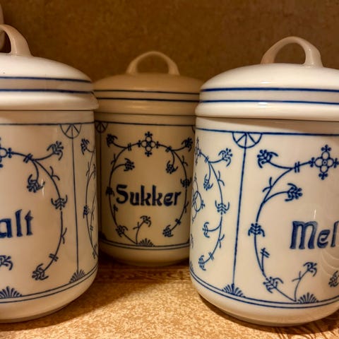 Yndig kaffekrukke i strådekor, uten nag eller krakkeleringer fra Jäger Porselen, Egersund,