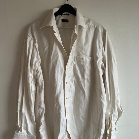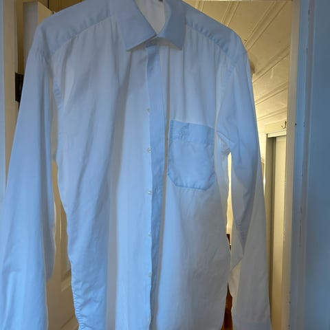 Dressmann Easy Care Cotton Blend skjorte i hvit farge, størrelse S. Skjorten er laget av en bomullsblanding som gjør den lettstelt. Den har langermet design med knappelukking foran og brystlomme.