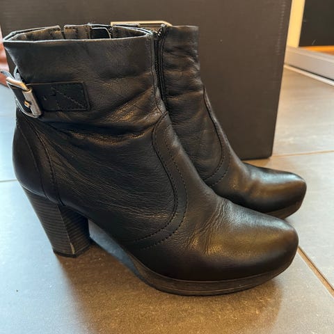 Svarte høyhælte sko åpen tå fra Bianco, i str. 39. Pent brukt.
