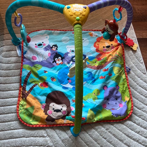 Selger den fine og fargerike babygym en vår, da barna har blitt for store til å leke i den.
