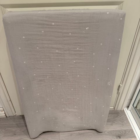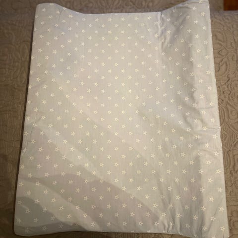Pen og lite brukt sengekant selges. Jeg har selv sydd trekket. Under er det et hvitt blondetrekk originalt.