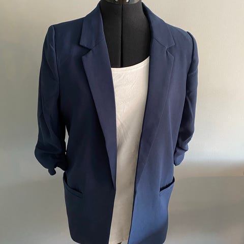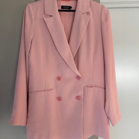 Utrolig flott Soaked in Luxury blazer og dressbukse i nydelig brunmelert farge. Blazeren er oversized og har dobbelspent knappelukking og to frontlommer. Buksene har god høyde på livet og smaler noe inn nederst. Tung i stoffet og sitter pent på. Kun brukt 2ggr. Nypris kr 2500. Ingen bruksmerker. Selges samlet.