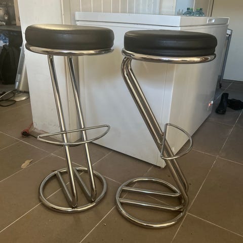 Selger et pent brukt barbord med 4 tilhørende krakker.