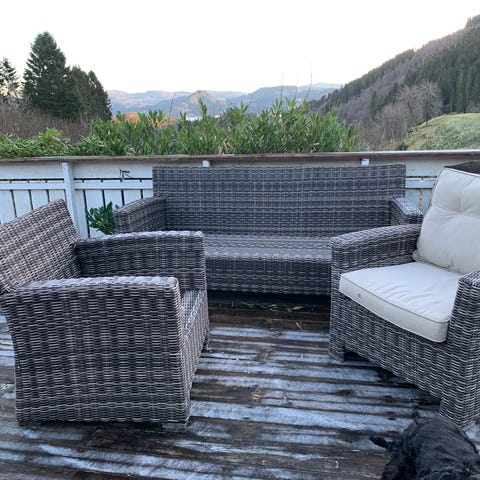 Jeg har noen ute møbler til salgs. En stol og to benker. Dette laget av imp. terrassebord